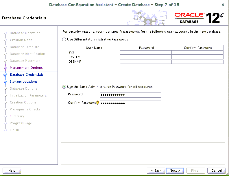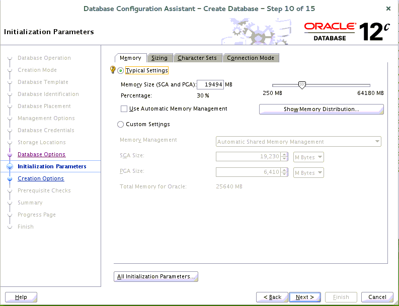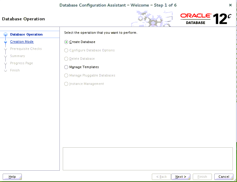 Figure 54: Creation Options #Select the database creation options as shown above, then click Next to continue.