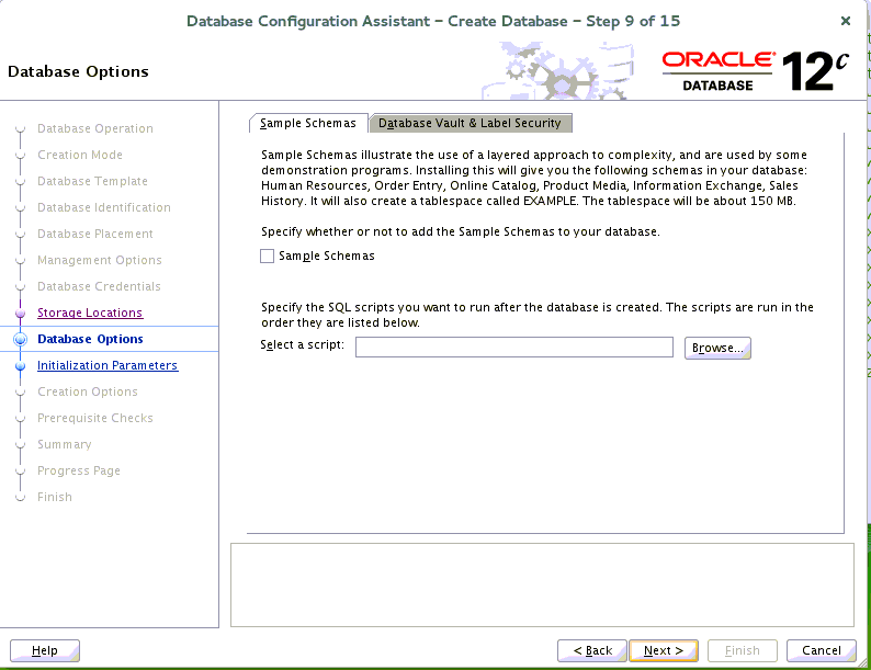Figure 52: Database Options #According to your needs, specify whether to add the schemas to your database. Click Next to continue.