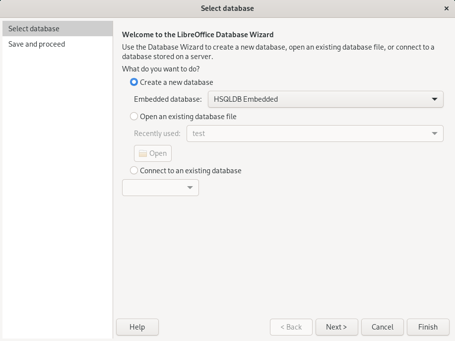 format, use an existing database file, or connecting to an existing database.Proceed with