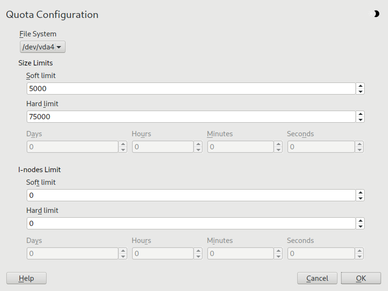 Quotas for Btrfs partitions are handled differently. For more information, see Section 1.2.5, “Btrfs quota support for subvolumes”.