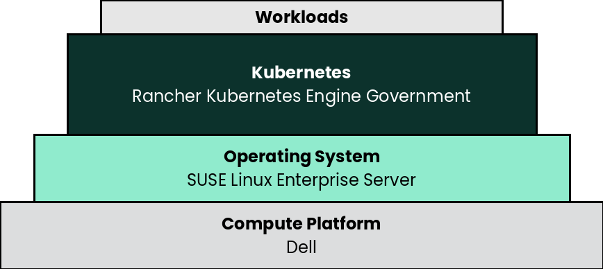 This section outlines the core elements of the Rancher Kubernetes Engine Government solution, along with the suggested target platforms and components.