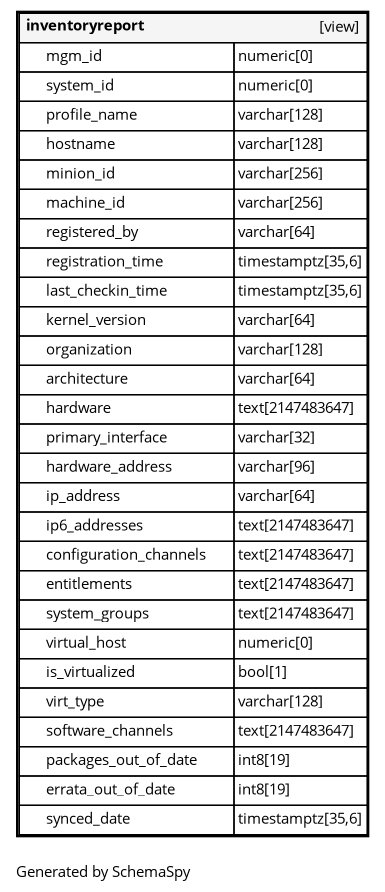 | Column | Type | Size | Nulls | Auto | Default | Children | Parents | Comments |