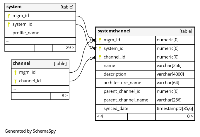 | systemchannel_pk | Primary key | Asc/Asc/Asc | mgm_id + system_id + channel_id |