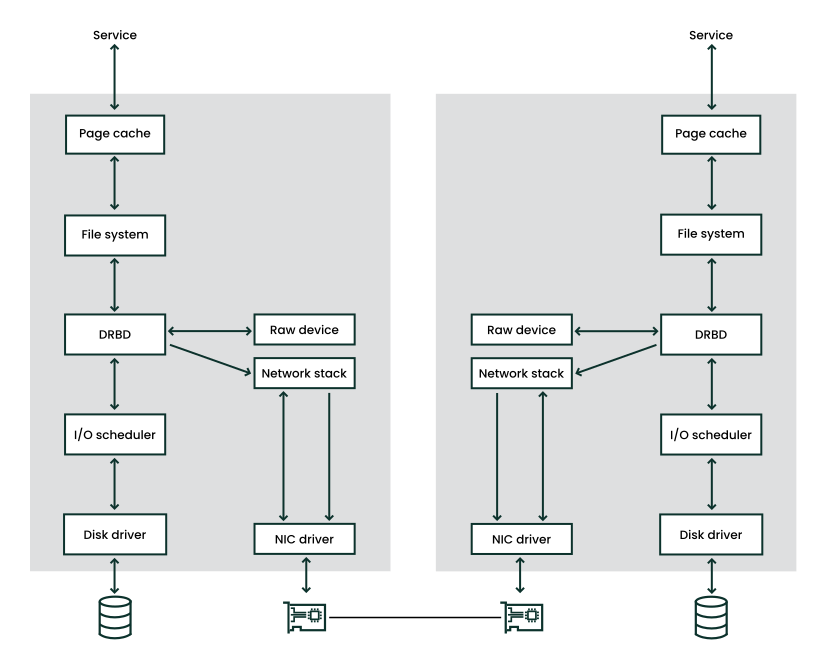 DRBD is a Linux Kernel module and sits between the I/O scheduler at the