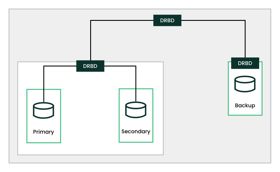 Three-way replication uses asynchronous (DRBD protocol A) and synchronous replication (DRBD protocol C). The asynchronous part is used for the stacked resource whereas the synchronous part is used for the backup.