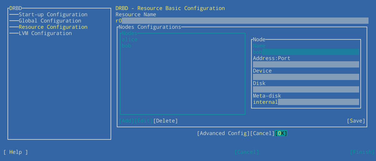 /usr/share/doc/packages/drbd/drbd.conffile and in the man page ofdrbd.conf(5).Click .