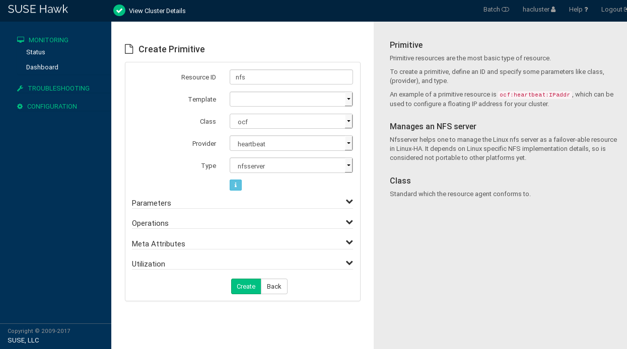 Needed for resource monitoring. When creating a resource, Hawk2 displays the most important resource operations (