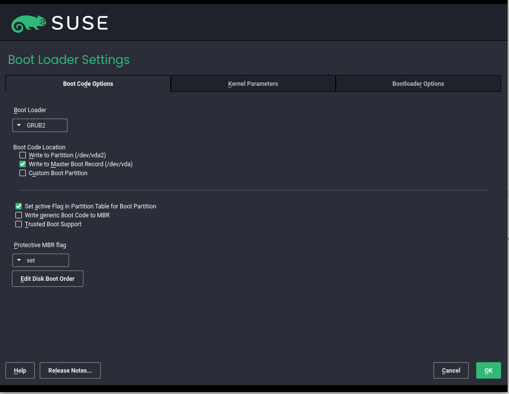 - 4.8 Parmfile for an installation from NFS with VNC and AutoYaST, with I/O device auto configuration