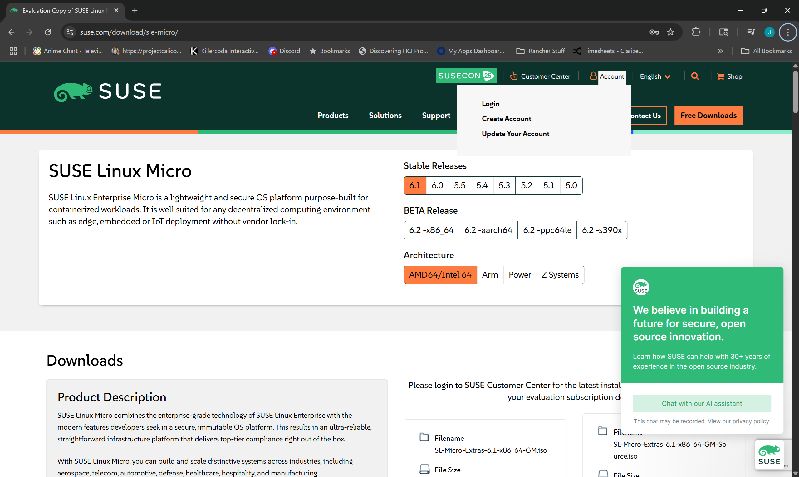 In your Web browser, navigate to the SUSE Linux Micro download page.