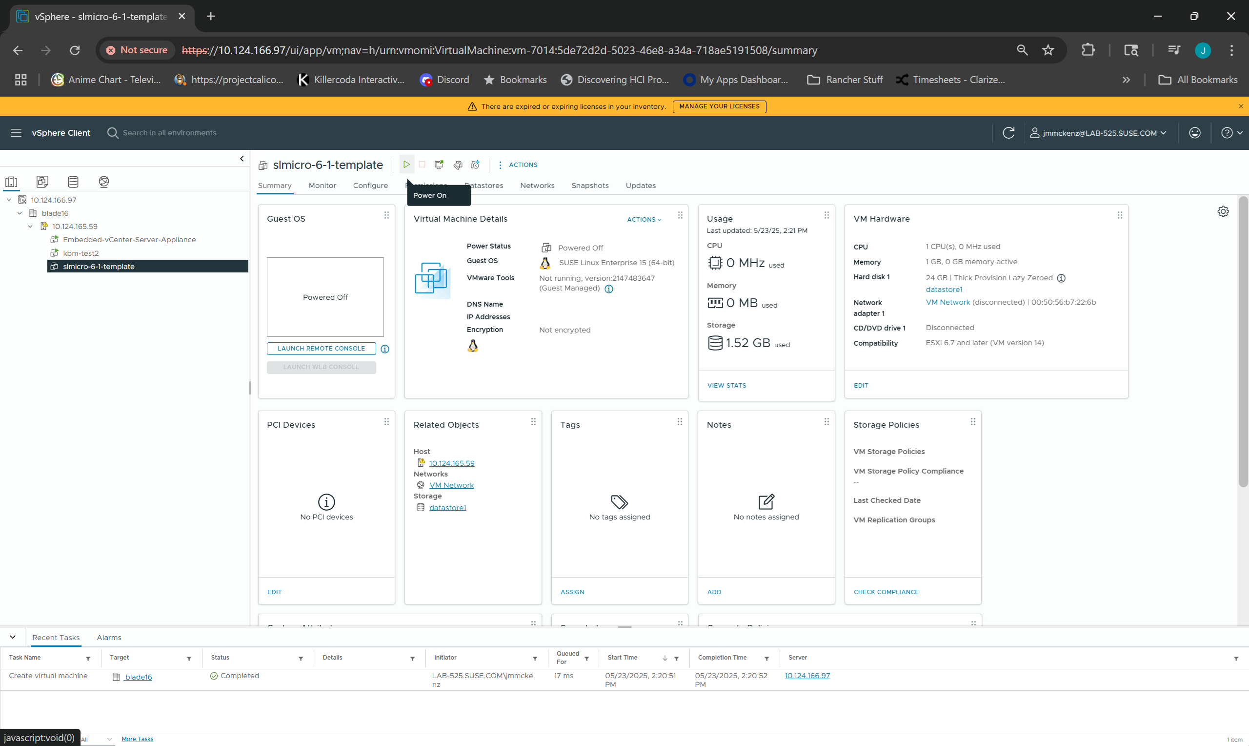 To create the template, you first need to import the SUSE Linux Micro VMDK image, then create a machine from the imported image and then convert the machine into a template. All steps are described in the following sections.