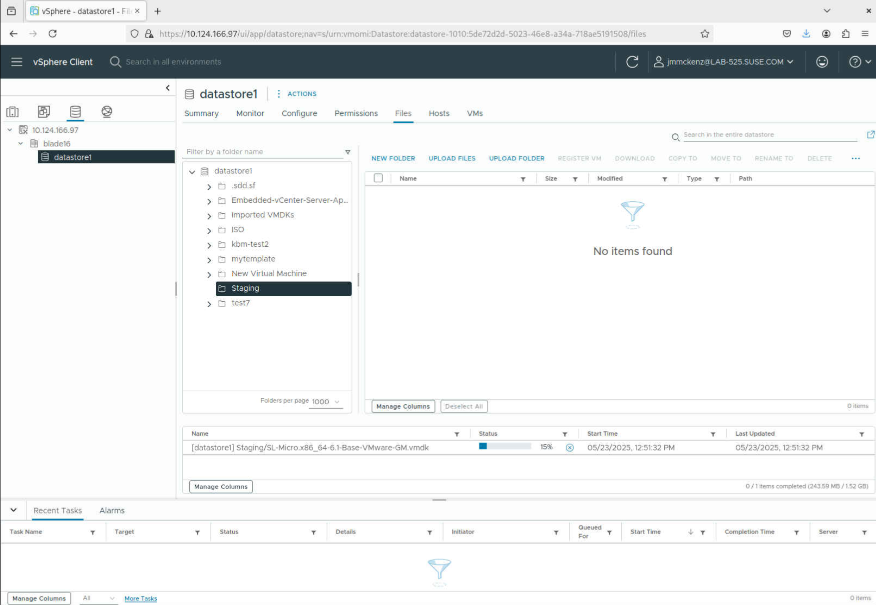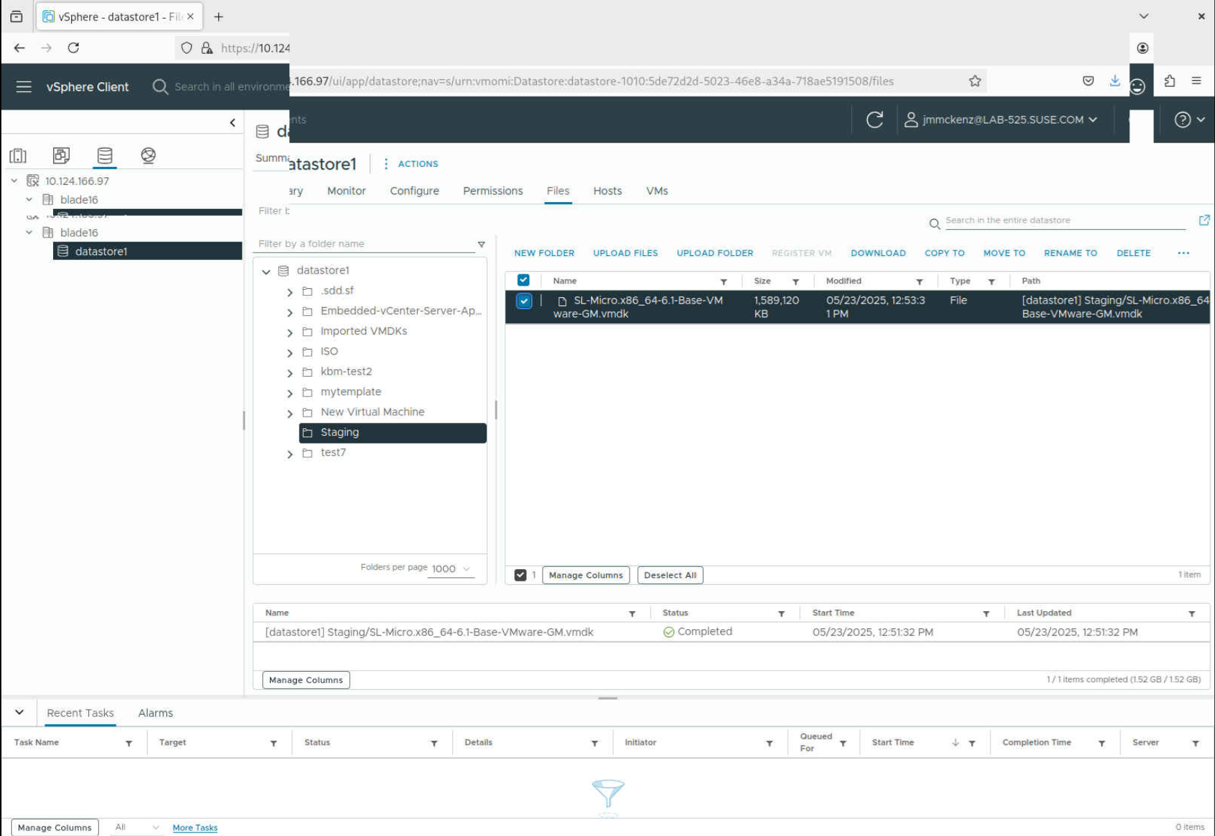 To upload the downloaded VMDK image to the vSphere datastore, proceed as described below: