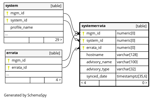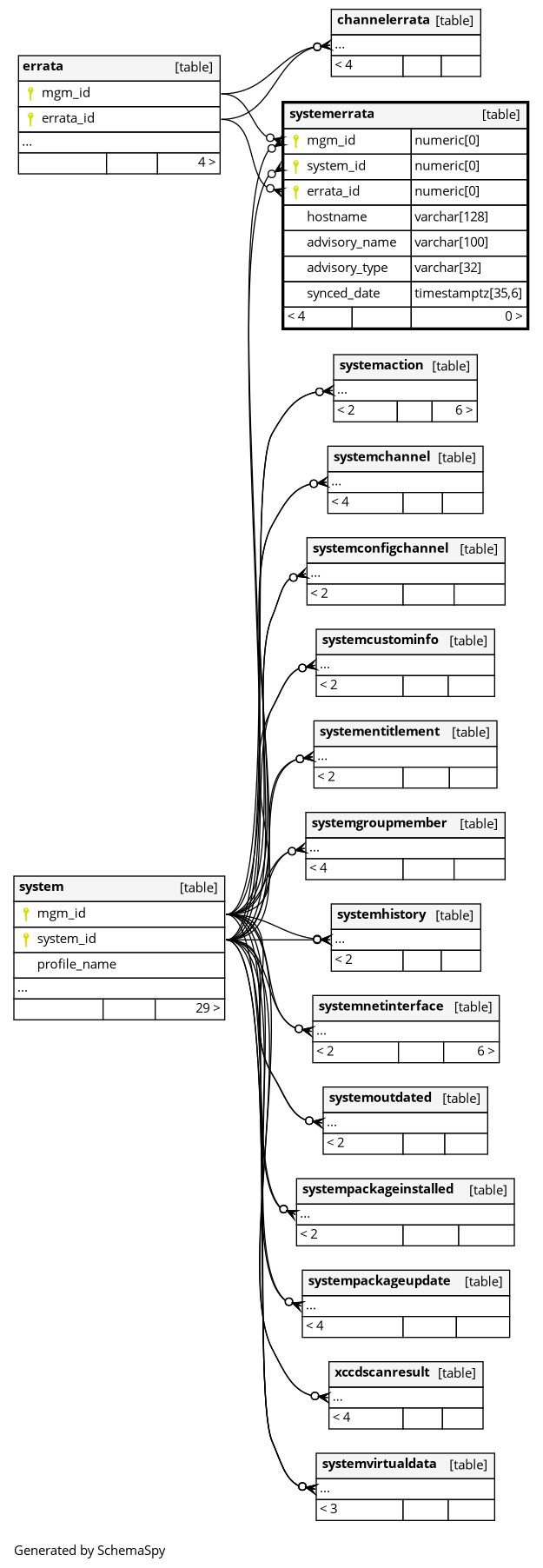 | systemerrata_pk | Primary key | Asc/Asc/Asc | mgm_id + system_id + errata_id |