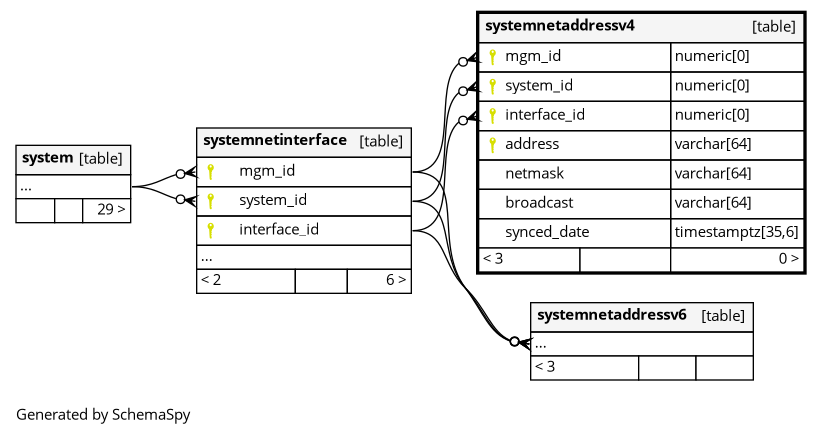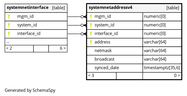 | systemnetaddressv4_pk | Primary key | Asc/Asc/Asc/Asc | mgm_id + system_id + interface_id + address |