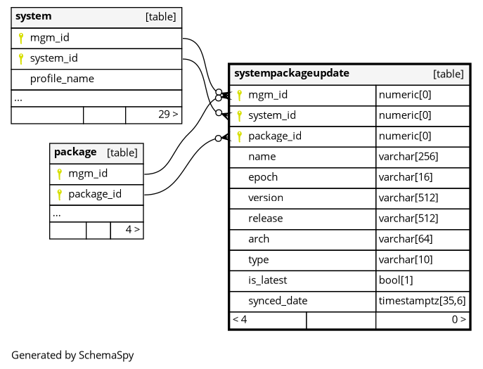 | systempackageupdate_pk | Primary key | Asc/Asc/Asc | mgm_id + system_id + package_id |