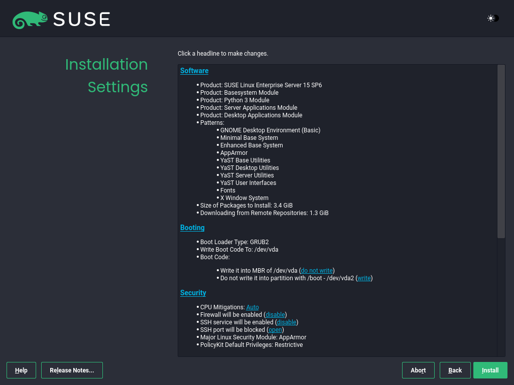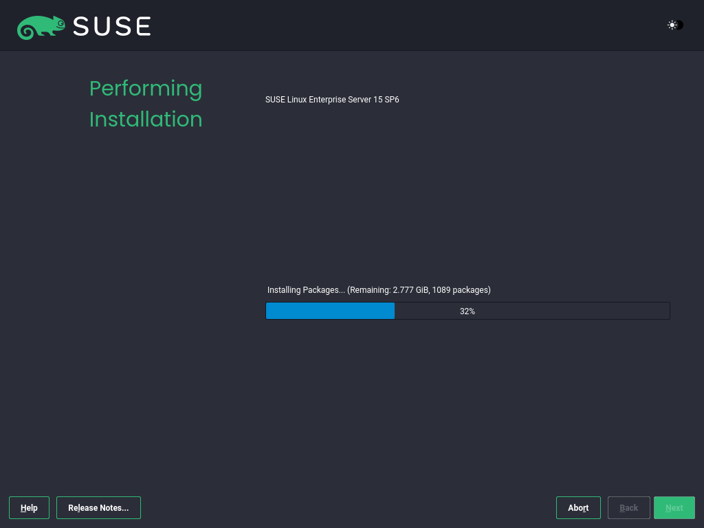 SUSE Linux Enterprise Server 15 SP6 for a traditional non-transactional operating system. For more information, see Section 3.1, “Installing SUSE Linux Enterprise Server”.