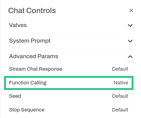 DefaulttoNative.Figure 13: Enabling native function calling #Close the window to apply the change.