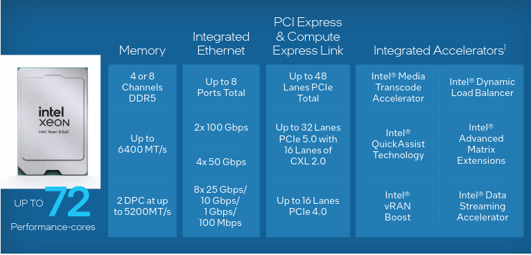 Intel Xeon 6 SoC features are detailed in the figure below.