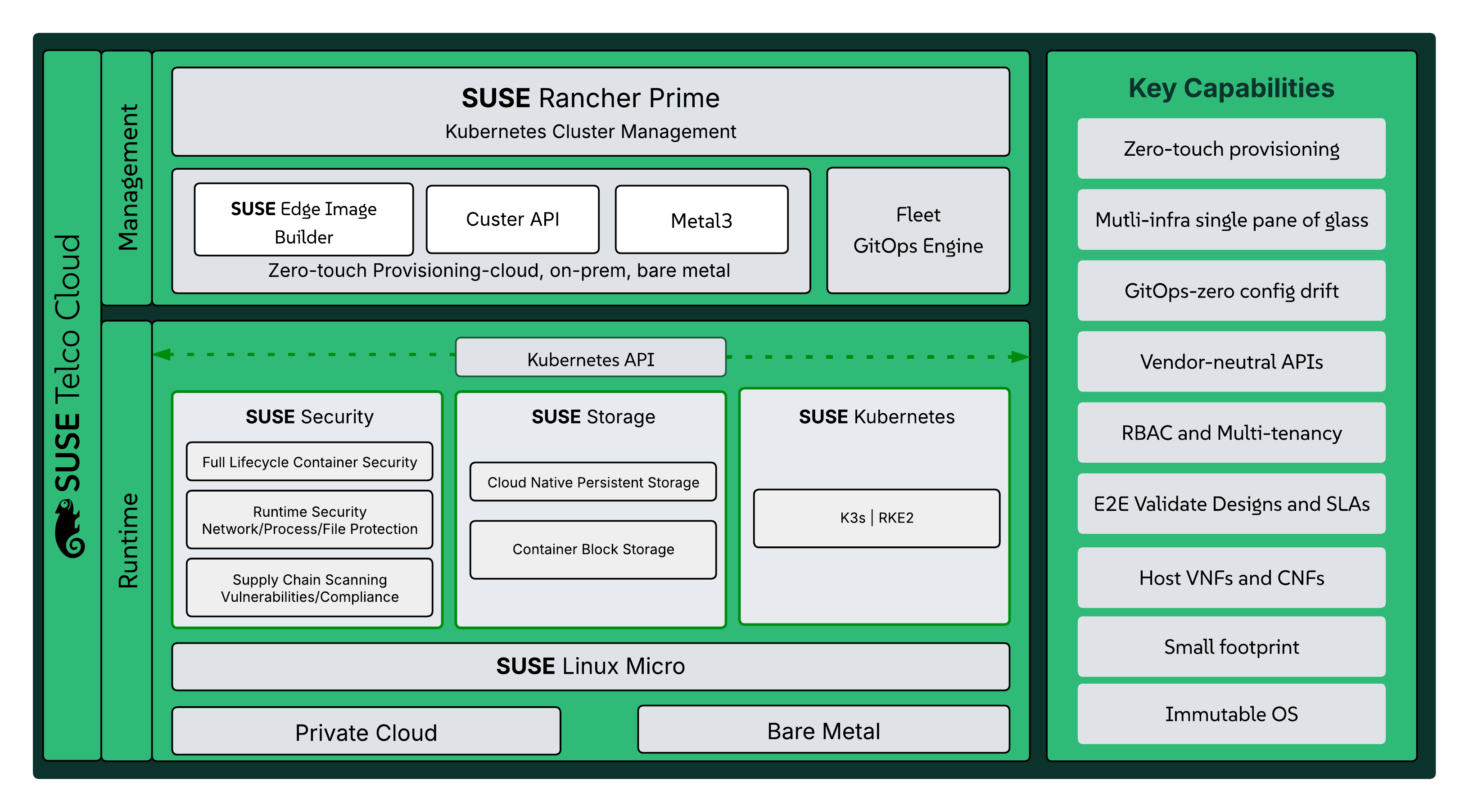 Key capabilities of SUSE Telco Cloud include: