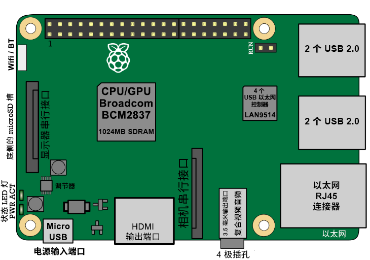 Raspberry Pi 3 B 型连接器 © Evan-Amos / own work / public domain 照片