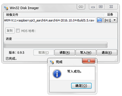 2. 运行 Win32 Disk Imager,选择解压缩的文件作为映像文件。然后,选择正确的驱动器号作为设备。单击写入开始该过程。