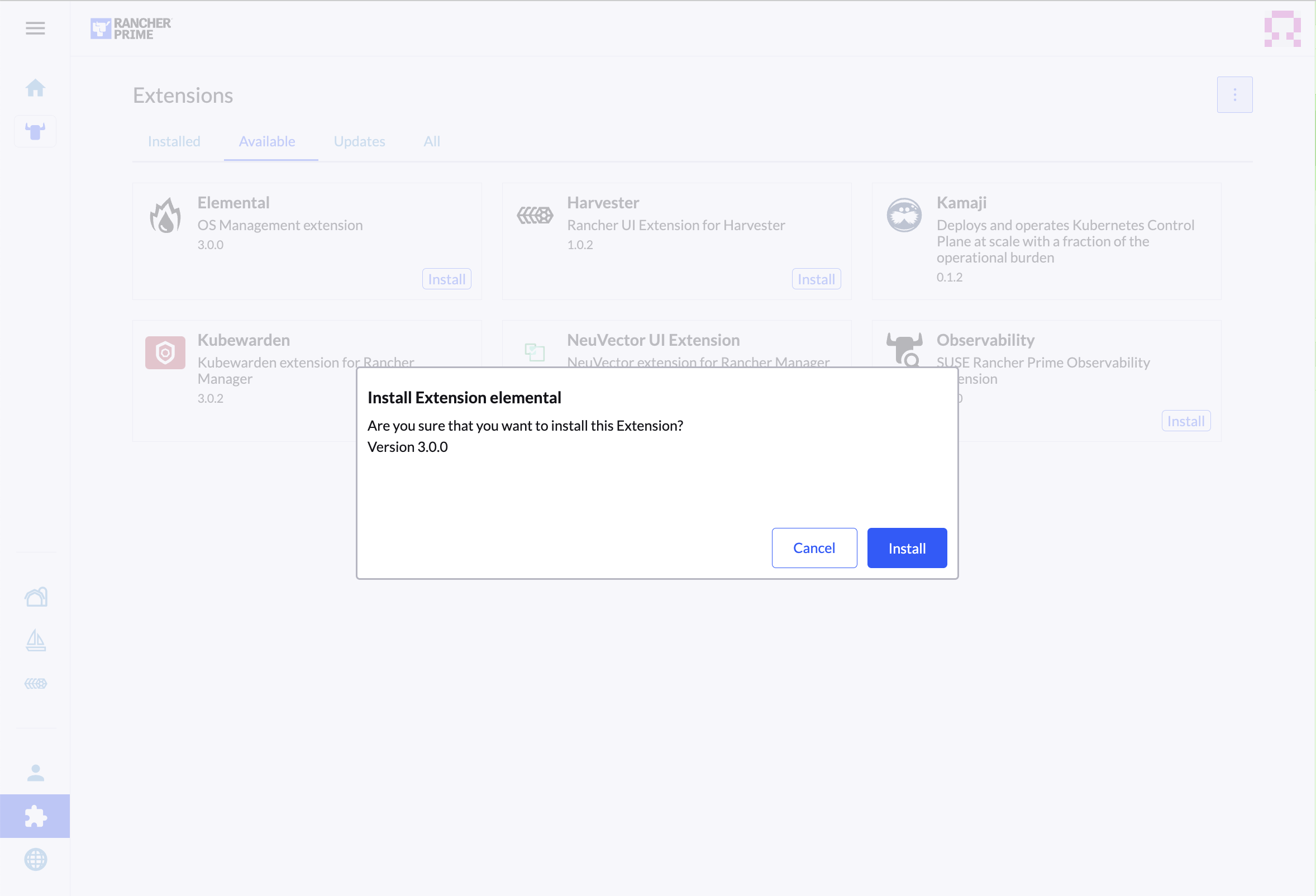helm install --create-namespace -n cattle-elemental-system \