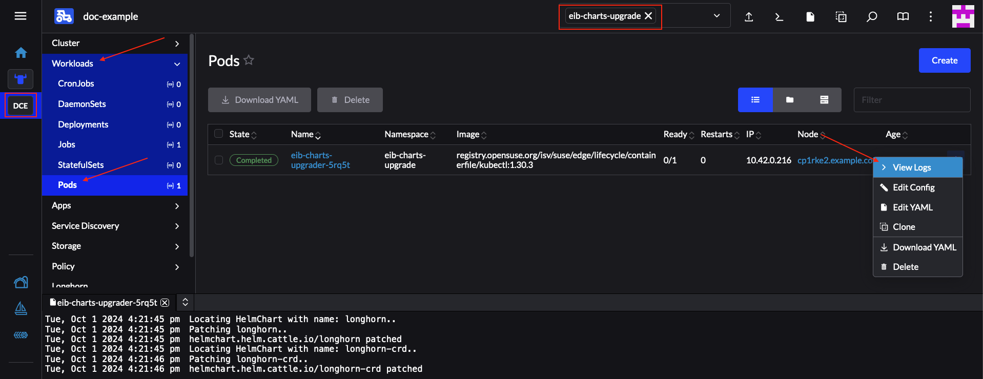 专用生命周期管理控制器(第 22 章 “升级控制器”),用于处理将管理群集组件升级到指定 SUSE Edge 版本的相关事务。